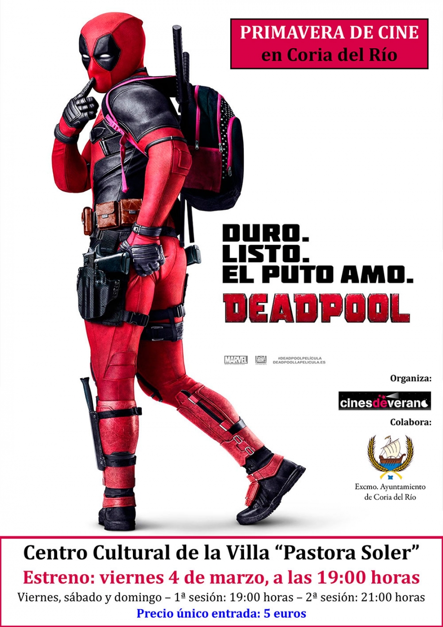 Las películas se proyectarán en el centro cultural Pastora Soler a partir del día 4 de marzo con la proyección de Deadpool, recién llegada a los cines de nuestro país. En principio, habrá dos sesiones de cine cada viernes, sábado y domingo de los meses de marzo y abril, una a las 19 horas y otra a las 21 horas. El precio de las entradas será de 5 euros, lo que las hace más baratas que las de los cines convencionales.