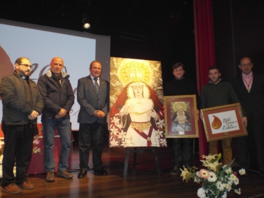 Poco después se descubría el cartel conmemorativo del Bicentenario, realizado por Antonio María Palomar Sanz. Con la Virgen como gran protagonista, el lienzo representa a la dolorosa de manera sencilla y austera, como caracteriza a la Hermandad, y rodeada de una cohorte de querubines en torno a la presea de la Coronación Canónica.