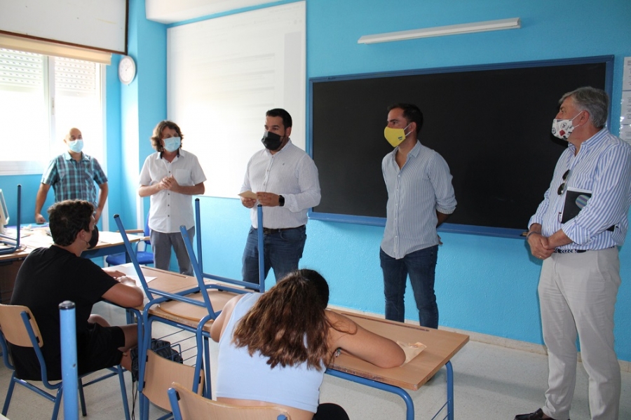 En este primer día, visitaron el centro el Alcalde, Romualdo Garrido, y el delegado municipal de Educación, David Ostos, quienes dieron la bienvenida a los jóvenes estudiantes y les entregaron las mascarillas reutilizables y homologadas que el Ayuntamiento ha preparado para todos los escolares de la localidad, las cuales ya se dieron en días pasados al alumnado de Infantil y Primaria, y que se entregarán esta semana a los 1.400 alumnos y alumnas del Majuelo.