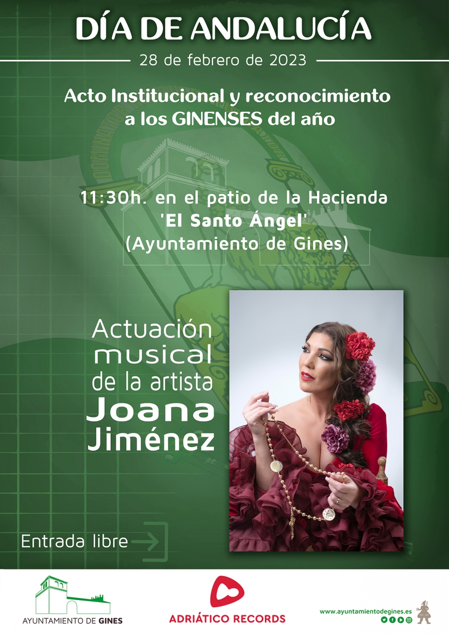 Gines celebra este próximo martes, 28 de febrero, el Día de Andalucía, una fecha que el Ayuntamiento quiere conmemorar, un año más, con la entrega de los honores y distinciones a los Ginenses del Año 2023.