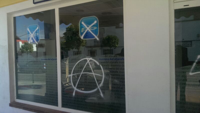 El presidente local ha indicado que "esta no es la primera vez que el Partido Popular de Mairena del Aljarafe sufre el ataque a su sede y recuerda que el pasado domingo, día de las elecciones europeas, también se encontraron en su fachada pegatinas de grupos de extrema izquierda, aunque no con la gravedad de esta vez".