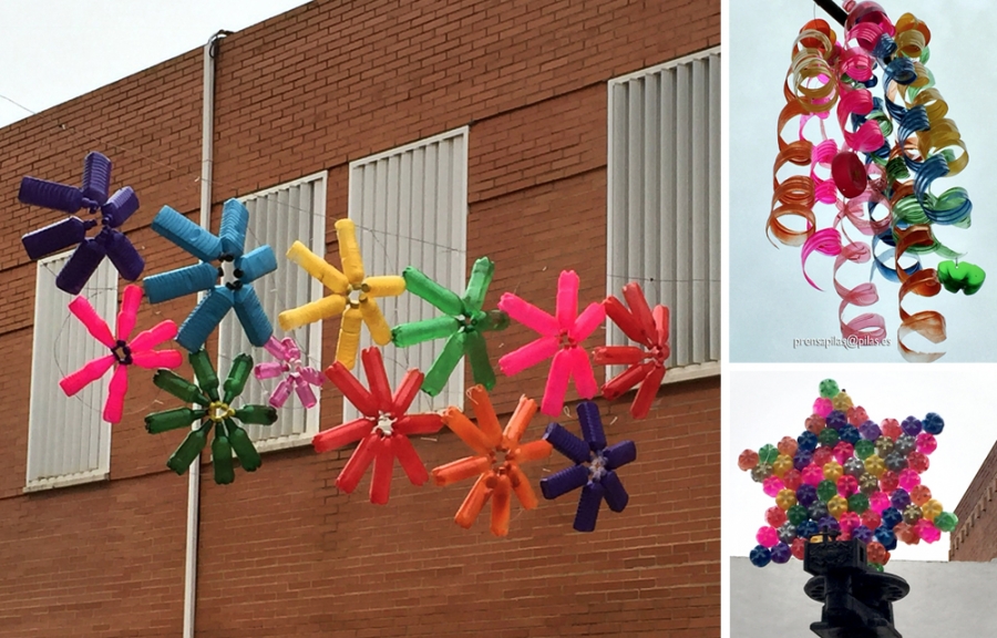 El uso de material reciclado para adornar las calles de Pilas se puso en práctica por vez primera el pasado 2015, si bien este año el Consistorio ha ampliado la zona cuya decoración se basa íntegramente en la reutilización de materiales de uso cotidiano.
