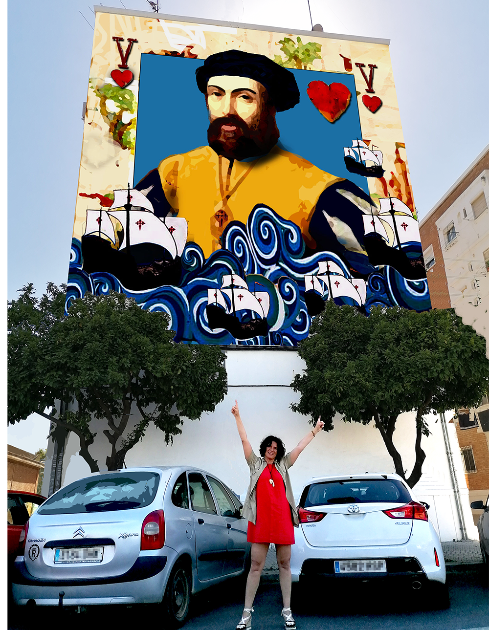 El primer mural será un homenaje al valiente capitán de barcos Fernando de Magallanes, y cubrirá la parte superior de la fachada, que mide 10 por 15 metros de alto. En concreto, el mural se pintará a partir de una altura de 3 metros sobre el suelo, por lo que el diseño ocupará un total de 10 x 12 metros cuadrados de superficie. Se utilizarán pinturas de primera calidad de la marca Montó pinturas, empresa valenciana que colabora con muchos eventos internacionales de arte urbano.