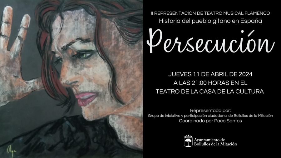 El Teatro de la Casa de la Cultura de Bollullos de la Mitación acogerá el jueves 11 de abril, a las 21:00 horas, la segunda representación del Teatro musical flamenco “Persecución”.