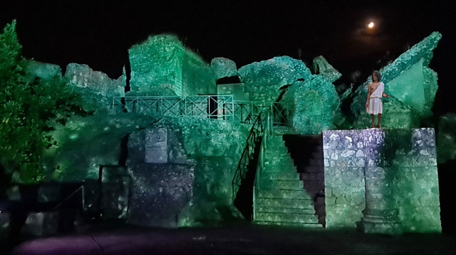 Bajo el título ‘Itálica, el sueño de Adriano’, la edición de este verano llega en forma de ficción poética en la que Adriano y el personaje de Antínoo, favorito del propio emperador, harán de guía en este paseo onírico y mágico por las entrañas del anfiteatro de Itálica. Durante este viaje narrativo por el anfiteatro, una musa acompañará a los visitantes en su recorrido por las partes más ocultas de este edificio en un ambiente mágico, vertebrado por media docena de escenas dramáticas protagonizadas por Antinoo y la voz del propio Adriano, acompañada de instalaciones sonoras y audiovisuales, entre las que destacan las proyecciones holográficas y los ‘video-mapping’.