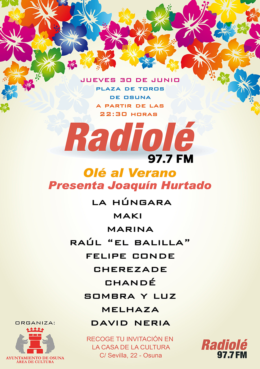 Por su parte, el coordinador de Radiolé, ha agradecido al Ayuntamiento de Osuna el esfuerzo que ha realizado por "volver a recuperar este evento que es de lo más demandado tanto en Osuna como en toda la comarca y conseguir que estén en el escenario de la plaza de toros artistas como: La Húngara, Maki, Marina, Raúl "El Balilla", Felipe Conde, Cherezade, Chandé, Sombra y Luz, Melhaza y David Neria.
