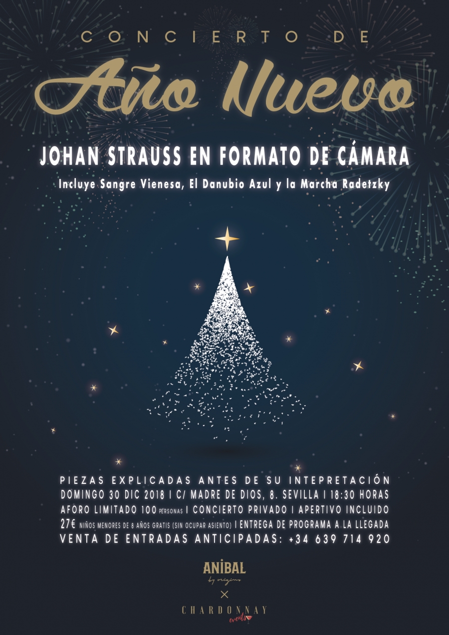 El Restaurante Aníbal, situado en la Calle Madre de Dios número 8 de Sevilla, está organizando un Concierto de Año Nuevo en su local, la temática de este concierto será "Johann Strauss en formato de Cámara". A esto se le incluirá Sangre Vienesa, El Danubio Azul y la Marcha Rodetzky. Las piezas tocadas serán explicadas antes de su interpretación, y a la llegada al restaurante los asistentes recibirán un programa con la información musical de la velada.