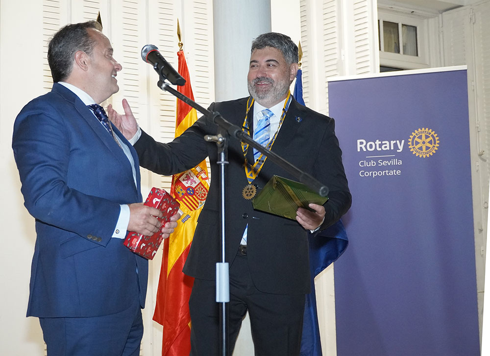 El Rotary Club Sevilla Corporate acaba de materializar el Cambio de Collares. Con esta tradicional ceremonia, que se renueva cada año, el abogado Rafael Jiménez Díaz ha tomado el relevo del empresario Francisco Díaz Cadenas en un acto celebrado en la Casa Palacio Soto Hermoso al que acudieron dirigentes de las instituciones sevillanas, el gobernador distrital de Rotary, Dimas Rizzo, y representantes de otros clubes rotarios, así como numerosos amigos y asociados.