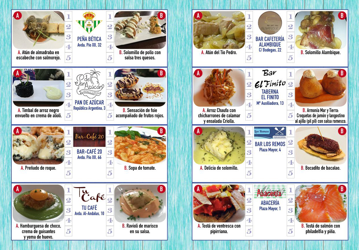 A continuación, las tapas que entran en concurso de los establecimientos participantes.