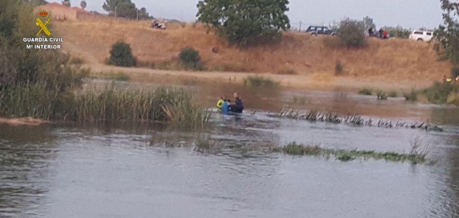 La patrulla en servicio de Santiponce ha rescatado con vida a un conductor atrapado en su vehículo por la crecida del río Rivera de Huelva a su paso por la localidad de Guillena debido al desembalse del Gergal.