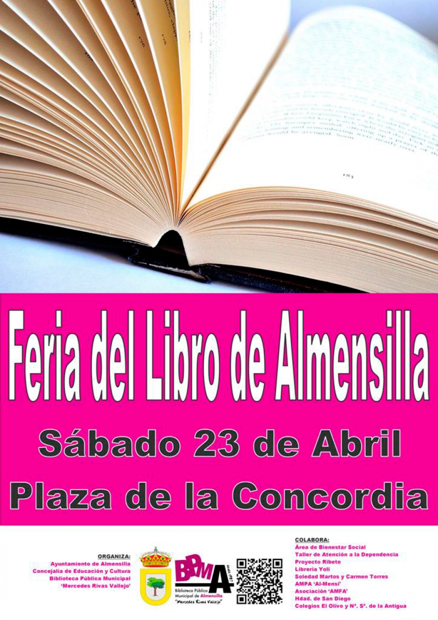 El próximo 23 de abril dará inicio en la Plaza de la Concordia de Almensilla la Feria del Libro. A continuación les mostramos las actividade que han sido programadas para dicho evento: