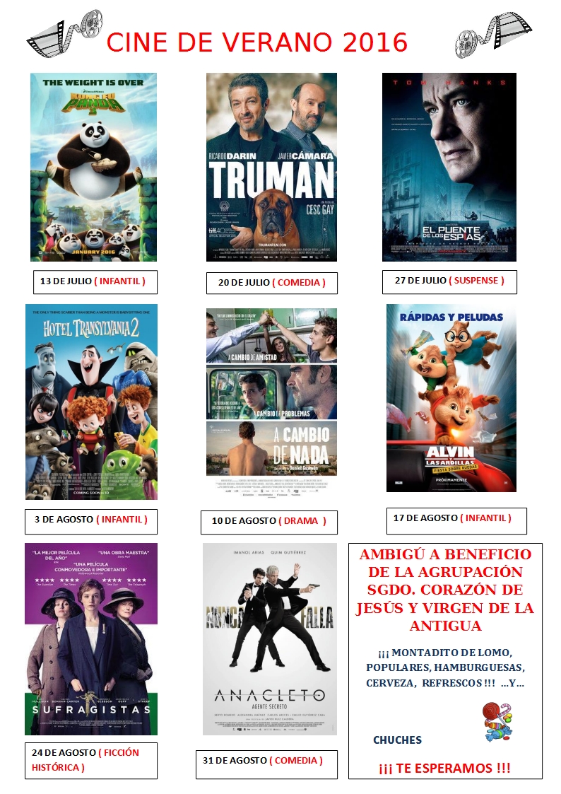 A continuación os dejamos la programación del cine de verano: