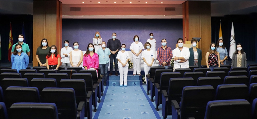 El Hospital San Juan de Dios del Aljarafe celebró ayer el acto de bienvenida de los 12 residentes de Medicina de Familia, Medicina Interna y Traumatología que comienzan su periodo de formación. El acto que tuvo que ser aplazado por el estado de alarma, se ha desarrollado en el salón de actos del hospital, garantizando todas las medidas de prevención: aforo limitado, distancia social, uso de mascarillas y gel hidroalcohólico.