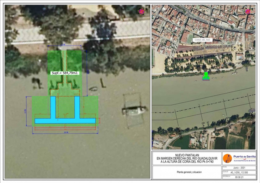 Esta actuación se puede ejecutar después de que el Ayuntamiento lograse obtener la concesión administrativa por parte de la Autoridad Portuaria de Sevilla para ocupar una mayor superficie en el Guadalquivir. Supondrá una inversión cercana a los 120.000 euros y permitirá ampliar el actual pantalán en más del doble de su tamaño, pasando de los 267,96 metros cuadrados actuales hasta los 584,79 que ocupará la lámina de agua tras la obra. La ampliación permitirá avanzar la plataforma 10 metros hacia el canal de navegación en la margen derecha del Guadalquivir y se llevará a cabo con dos nuevos módulos flotantes para el atraque de 24,00m² cada uno (12,00 x 2,00), conectados con dos nuevas pasarelas de acceso desde el pantalán existente, de 16,00 m² (8,00 x 2,00) cada una, con los elementos auxiliares que la completen, formando así un rectángulo en el que el lado más largo será el paralelo al río.