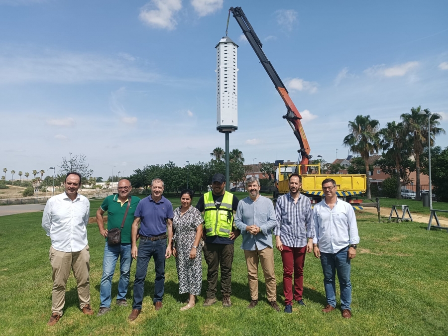 El Ayuntamiento de Coria del Río ha instalado la Torre de la Biodiversidad, una infraestructura que pretende ampliar la presencia de aves y murciélagos, potenciando así los servicios ecosistémicos que proporcionan estos animales como, por ejemplo, el control natural de plagas.