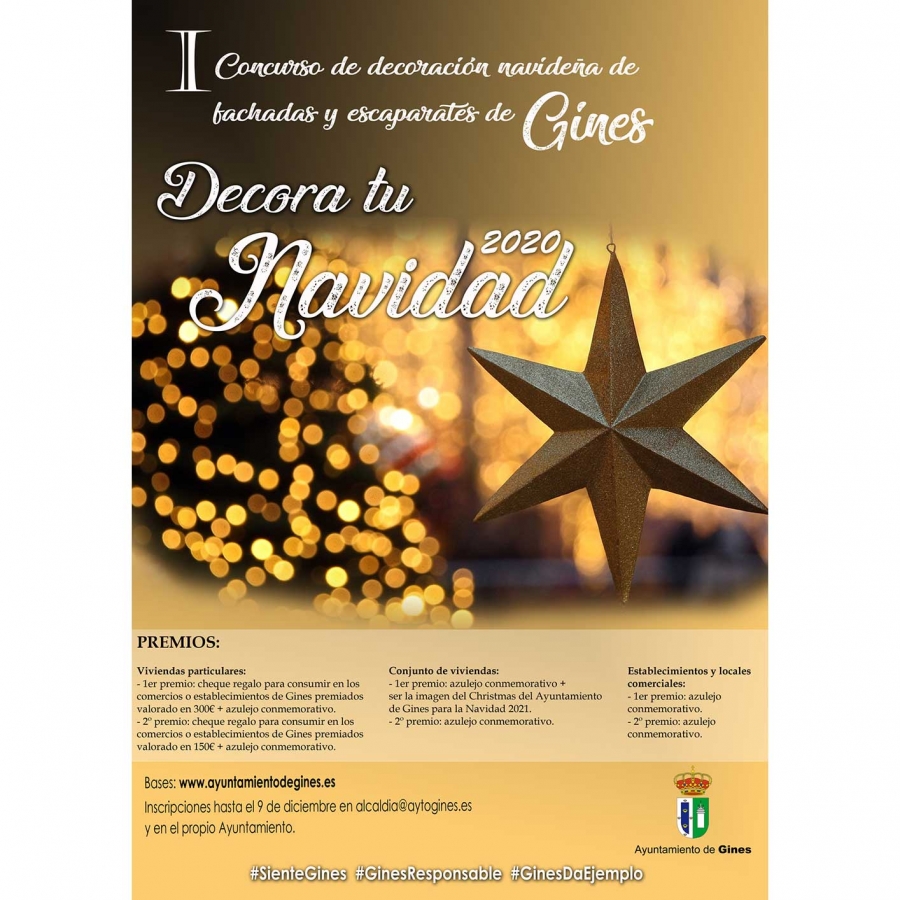 Con el objetivo de potenciar la implicación vecinal en el exorno del municipio durante las fechas navideñas, el Ayuntamiento de Gines ha convocado, por primera vez este año, el Concurso ‘Decora tu Navidad 2020’, una iniciativa que premiará los mejores adornos exteriores de casas particulares, conjuntos de viviendas y establecimientos comerciales.