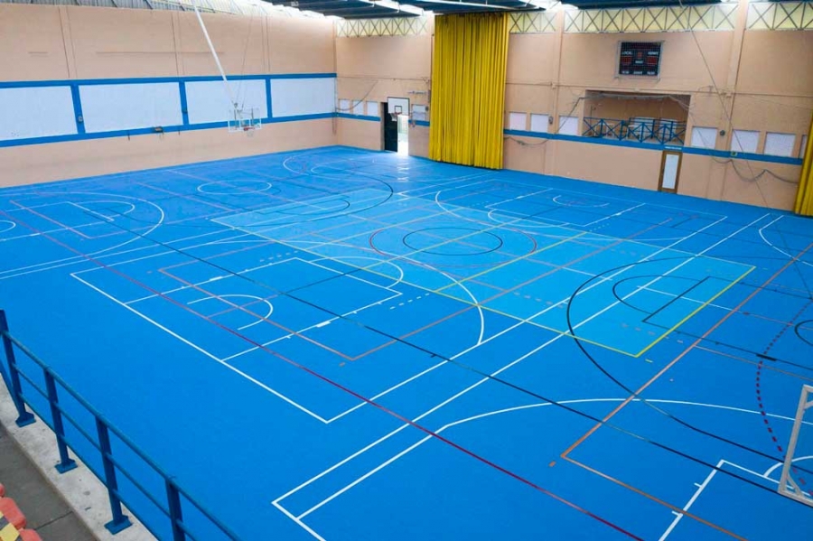 Concretamente, se ha pretendido mejorar el nivel de la superficie y colocado un pavimento deportivo prefabricado de caucho natural y sintético flotante, que está compuesto por una lámina aislante de 2’5 milímetros y una capa estabilizante de 4’7 milímetros.