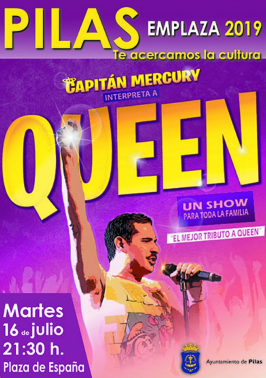 A las 21.30 horas, en la Plaza de España, tendrá lugar un espectáculo tributo a Queen, la legendaria banda británica de rock formada en 1970 en Londres por el cantante Freddie Mercury, el guitarrista Brian May, el baterista Roger Taylor y el Bajista John Deacon.