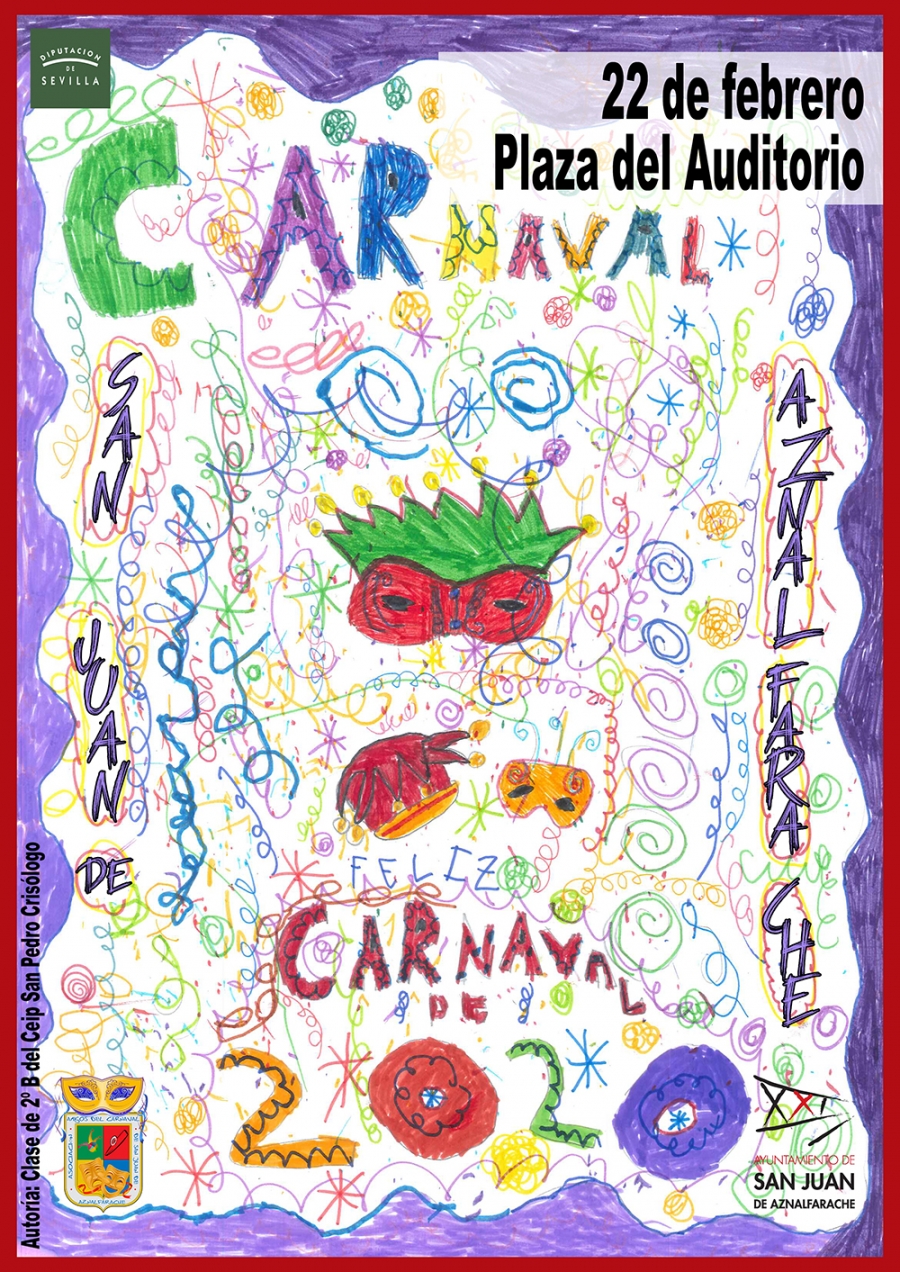 El alumnado de 2ºB del CEIP San Pedro Crisólogo es el autor del cartel con el que este año se anuncia el carnaval en San Juan. Este cartel fue el ganador del concurso escolar organizado por la Asociación Amigos del Carnaval del municipio.