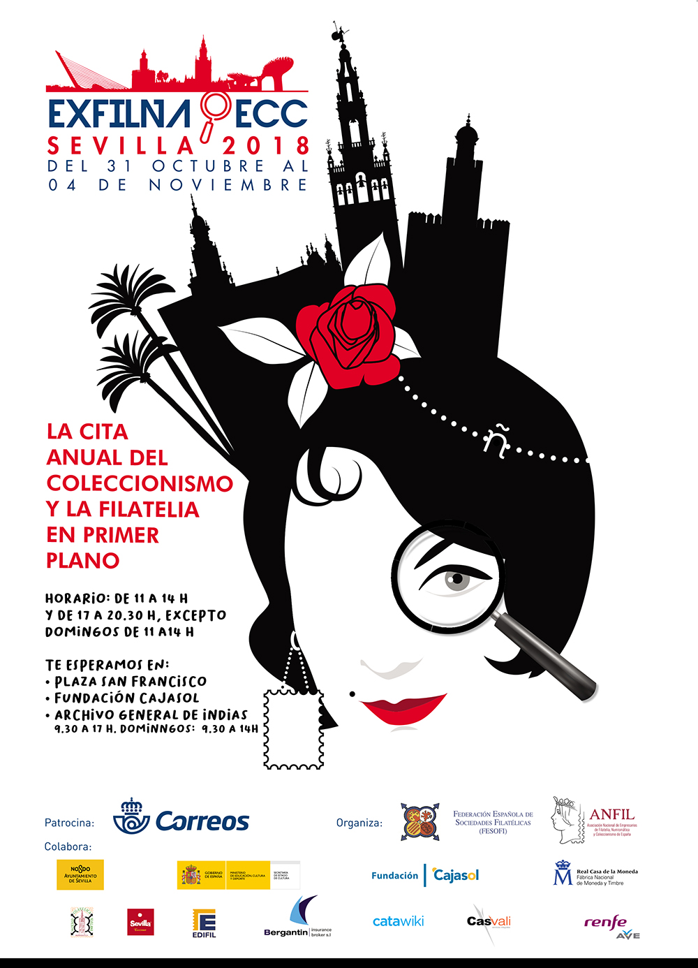 Este año 2018, la 56ª edición de la Exposición Filatélica Nacional EXFILNA y la 5ª ECC (European Convention for Collectors, Convención Europea de Coleccionismo) tendrán lugar en Sevilla del 31 de octubre al 4 de noviembre.